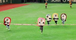 巨人名物「すしレース」が世界進出?2度フライングの珍事も、海外ファン大盛り上がり